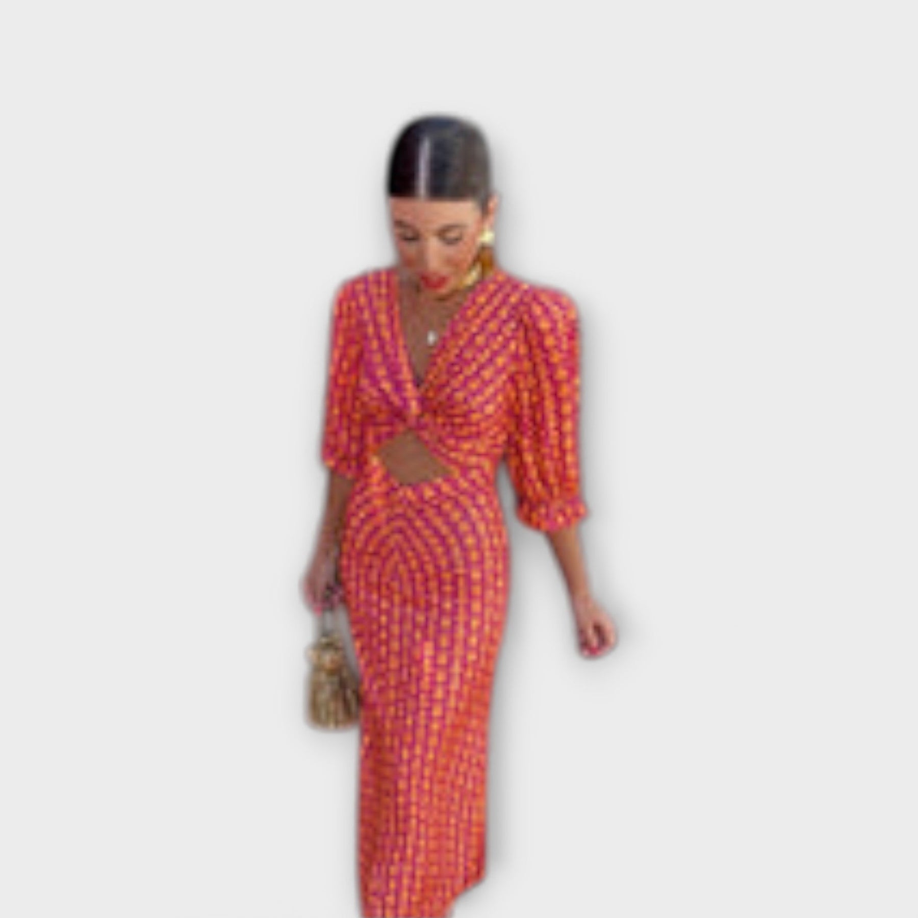 Bright, flattering, and incredibly easy to wear, this dress features a flowy cut that beautifully enhances your silhouette. The thin straps and midi length add a touch of subtle charm, making it perfect for any occasion.