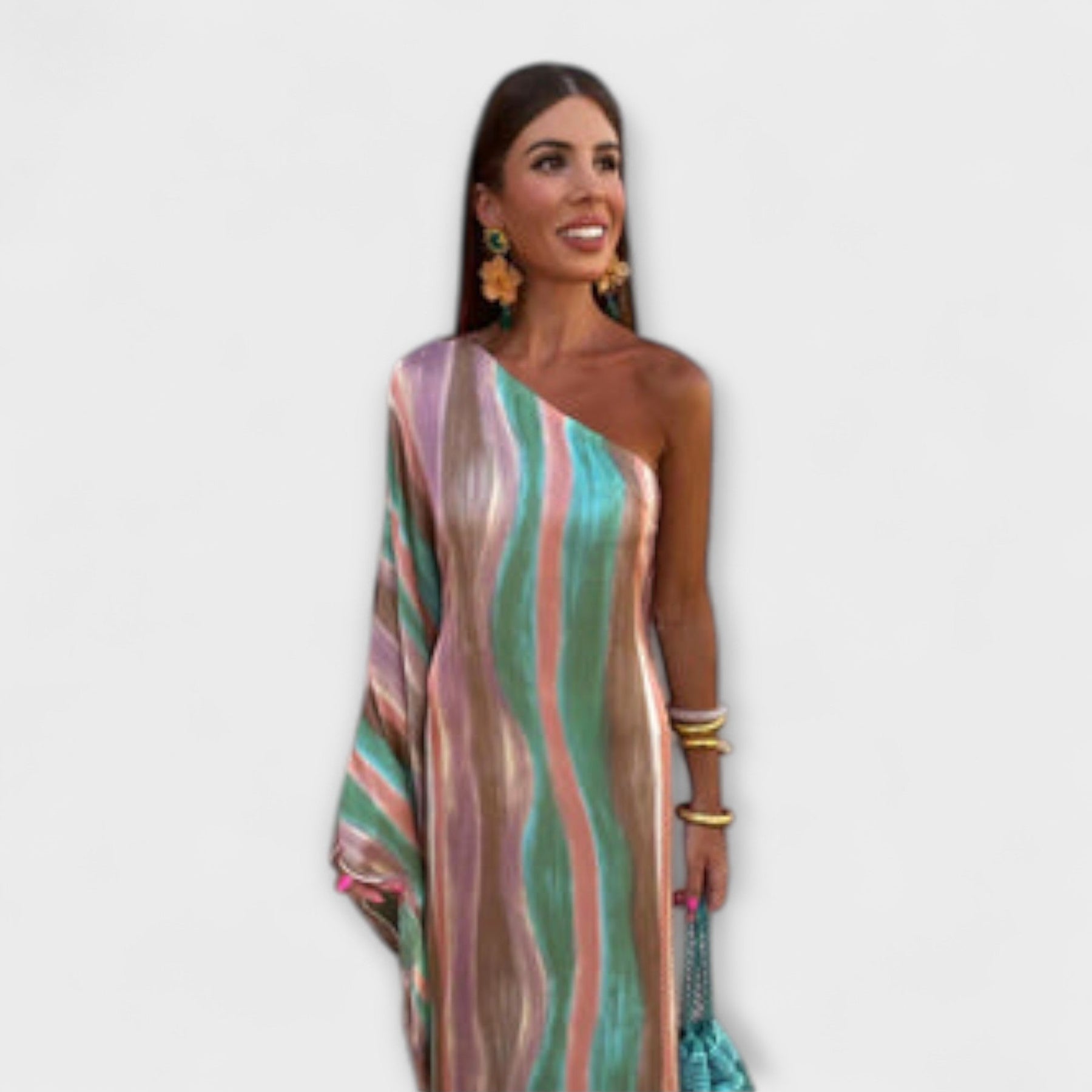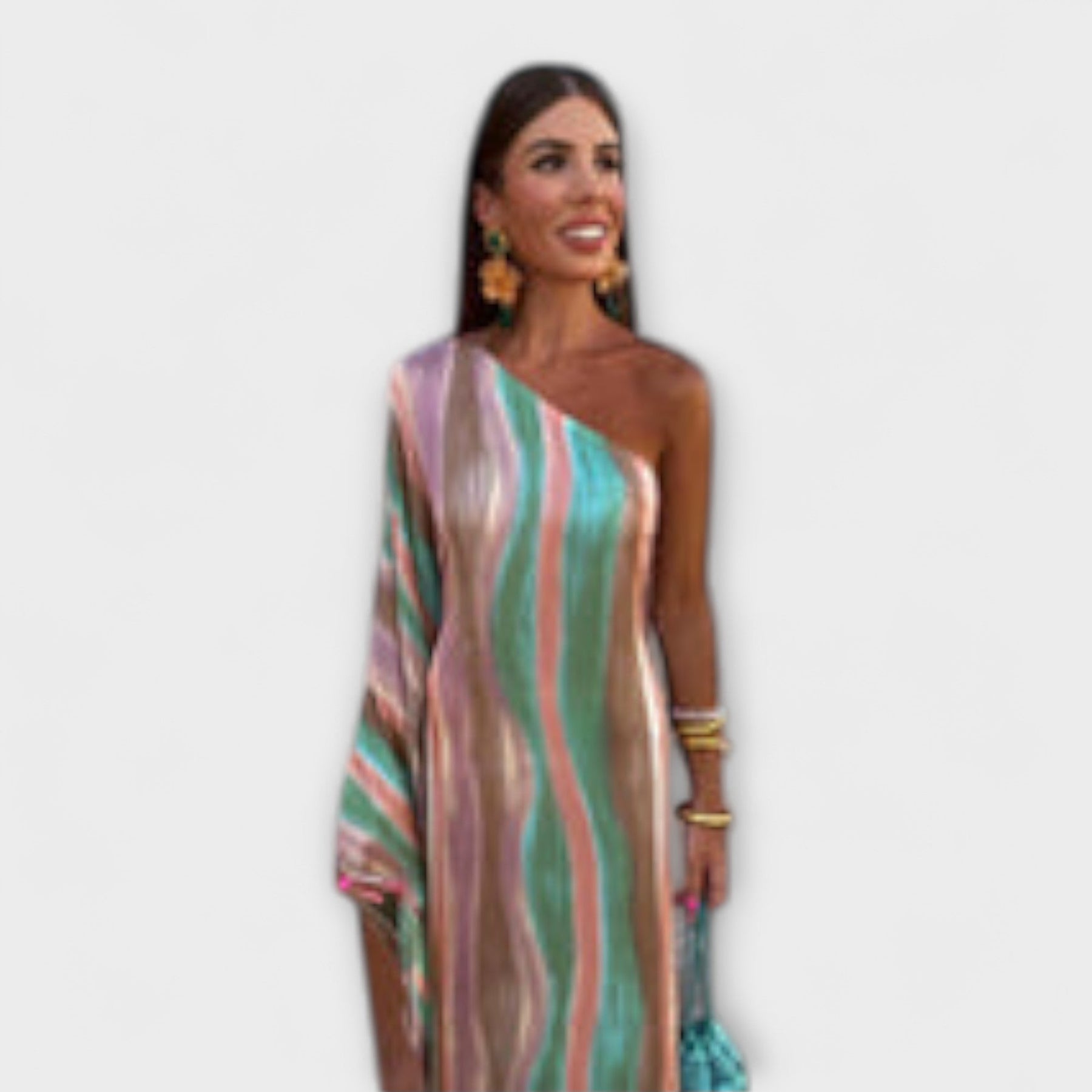 Wrap yourself in a charming silhouette with its unique asymmetrical cut, designed to enhance your figure. The vibrant colors add a bold touch to every movement, ensuring you stand out at any occasion.